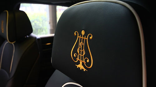 座椅头枕上也缝制有施坦威的金色琴尾标志。